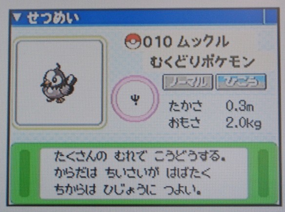 シンオウ地方の新ポケ発見。ムクドリをモデルにしたポケモンです。ネーミングが安易・・・?
